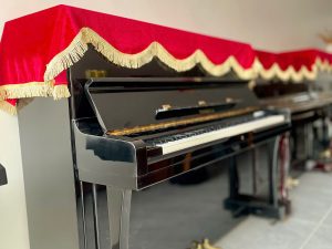 – Tặng bộ phụ kiện : Ghế piano, khăn phủ đàn, ống sấy