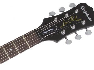 Body Body shape: Single cutaway Body type: Solid body Body material: Solid wood Top wood: Not applicable Body wood: Poplar Body finish: Satin Orientation: Right handed Neck Neck shape: '60s SlimTaper D Neck wood: Mahogany Joint: Bolt-on Scale length: 24.75 in. Truss rod: Standard Neck finish: Satin Fretboard Material: Rosewood Radius: 14 in. Fret size: Medium jumbo Number of frets: 22 Inlays: Dot Nut width: 1.687 in. (42.8 mm) Pickups Configuration: HH Neck: 650R Middle: Not applicable Bridge: 700T Brand: Epiphone Active or passive pickups: Passive Series or parallel: Series Piezo: No Active EQ: No Special electronics: None Controls Control layout: Master volume, tone Pickup switch: 3-way Coil tap or split: No Kill switch: No Hardware Bridge type: Fixed Bridge design: Tune-o-matic Tailpiece: Stopbar Tuning machines: Die-cast Color: Chrome Other Number of strings: 6-string Special features: Vintage worn finish Case: Sold separately Accessories: None Country of origin: China